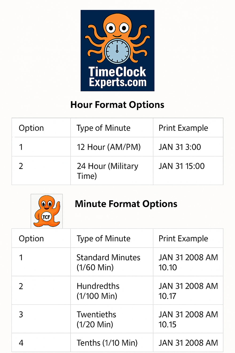 - Automatic DST adjustment keeps timecards accurate year-round.